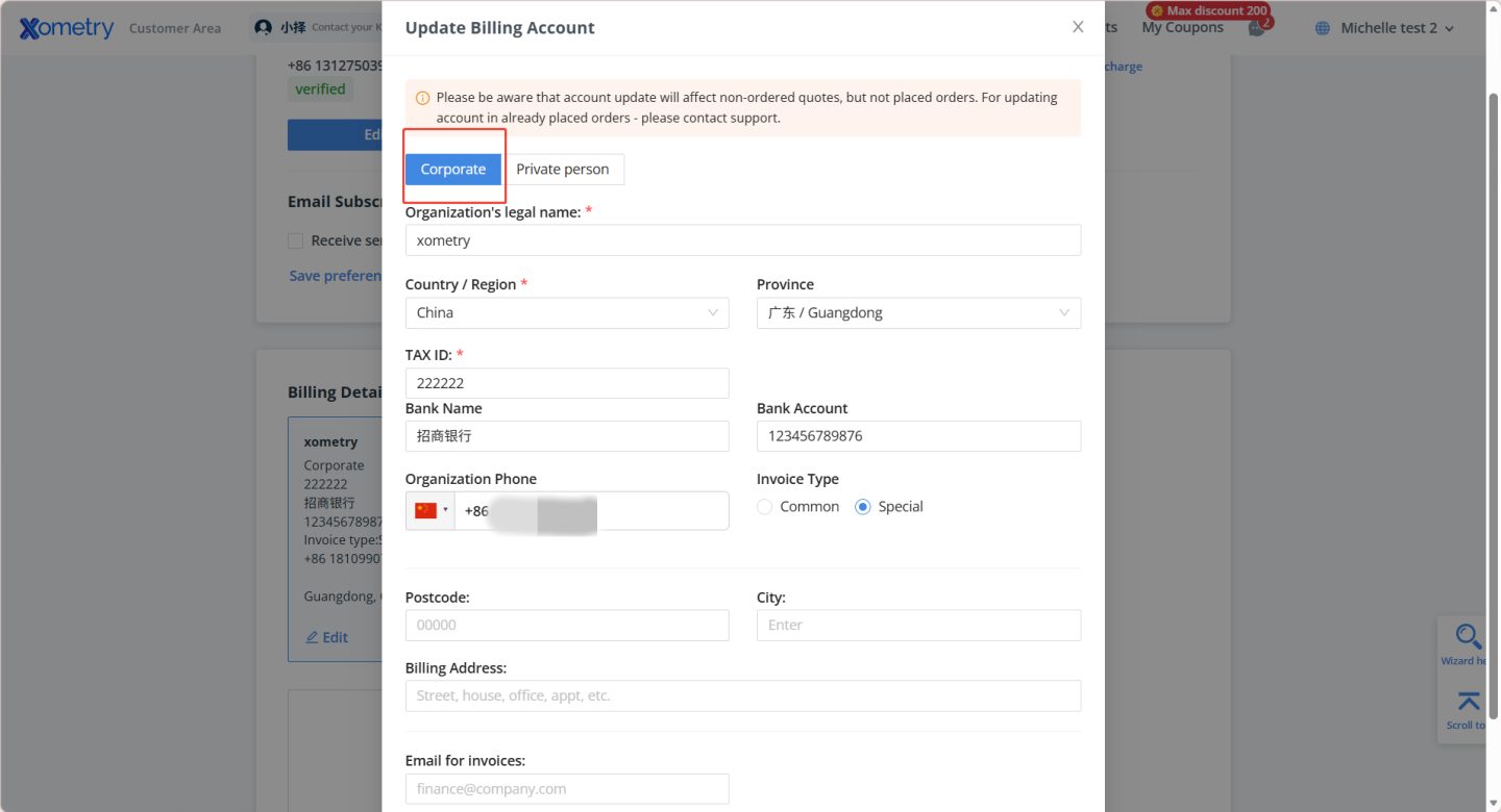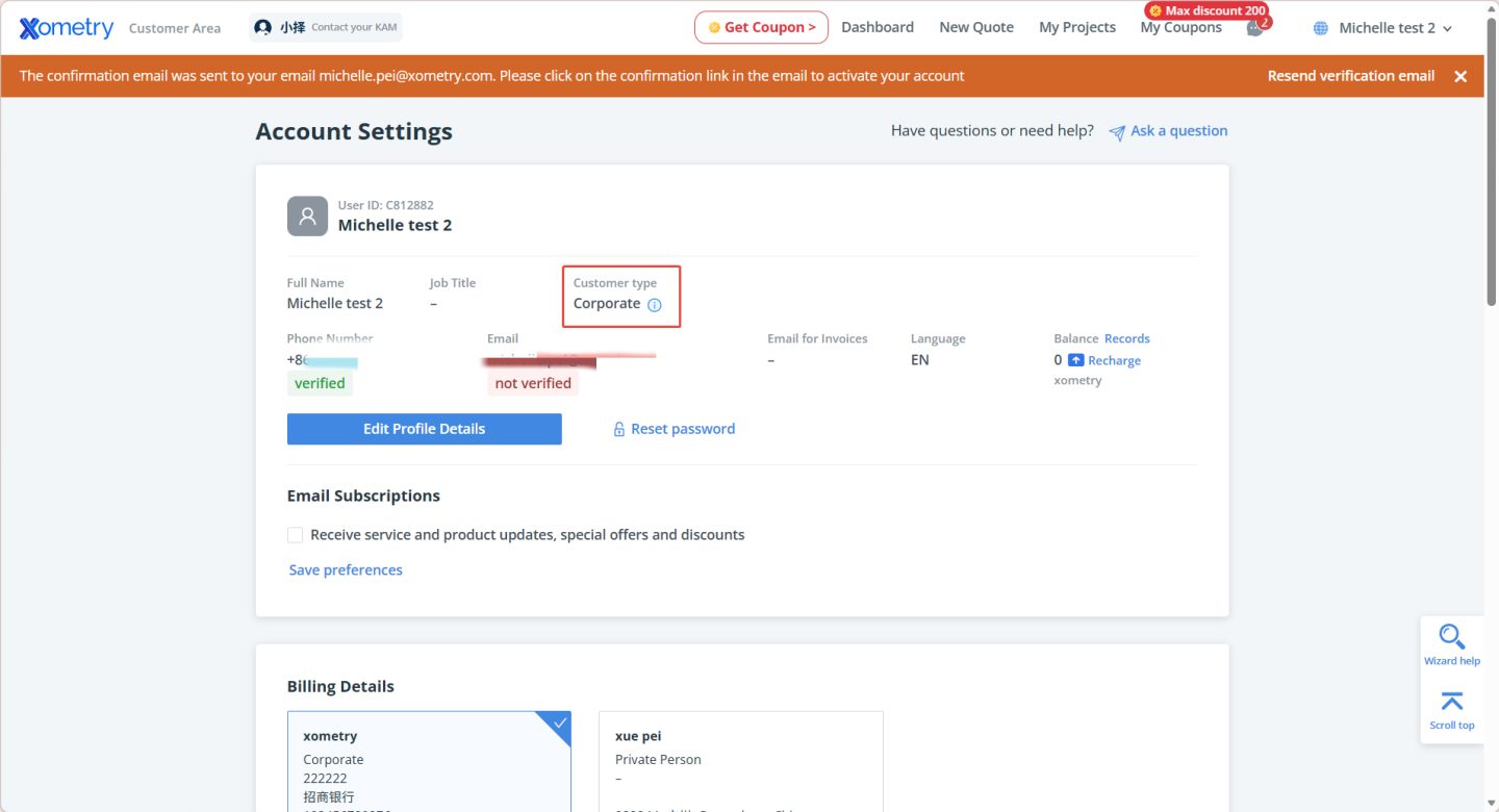 1.Upload your project files: First, confirm that your customer type is set to 【Corporate Customers】 as shown in Figure 1-1, and under 【Account Settings】-【Billing Information】 , verify that your role is set to 【Company Employee】 as shown in Figure 1-2.