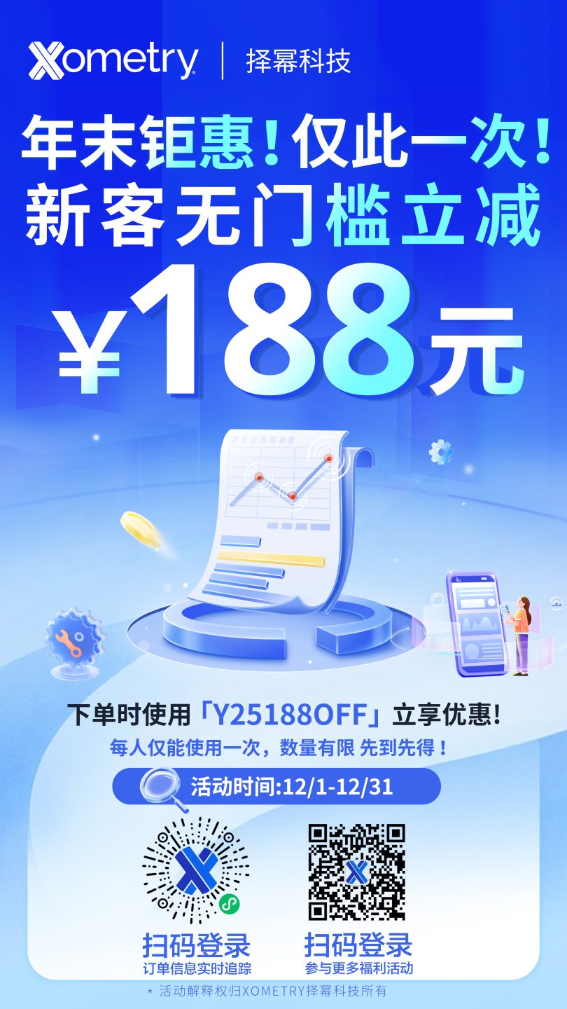 这个12月,Xometry择幂科技为您备好一份年终福利,助您勇敢迈出第一步!