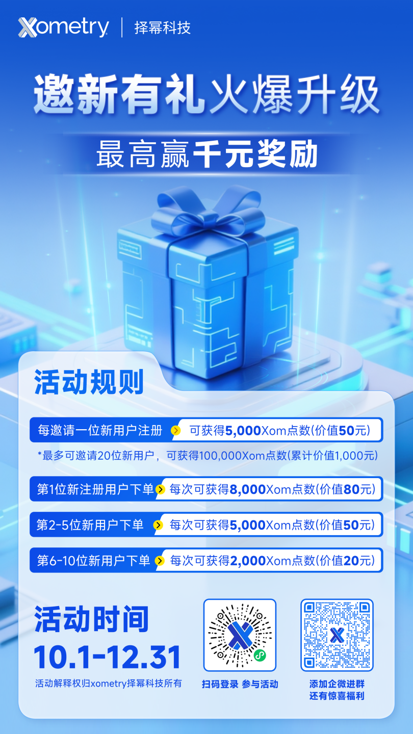 邀请好友加入Xometry择幂科技,即可获得Xom点数奖励,直接用于抵扣后续订单货款,至高可达1380元!