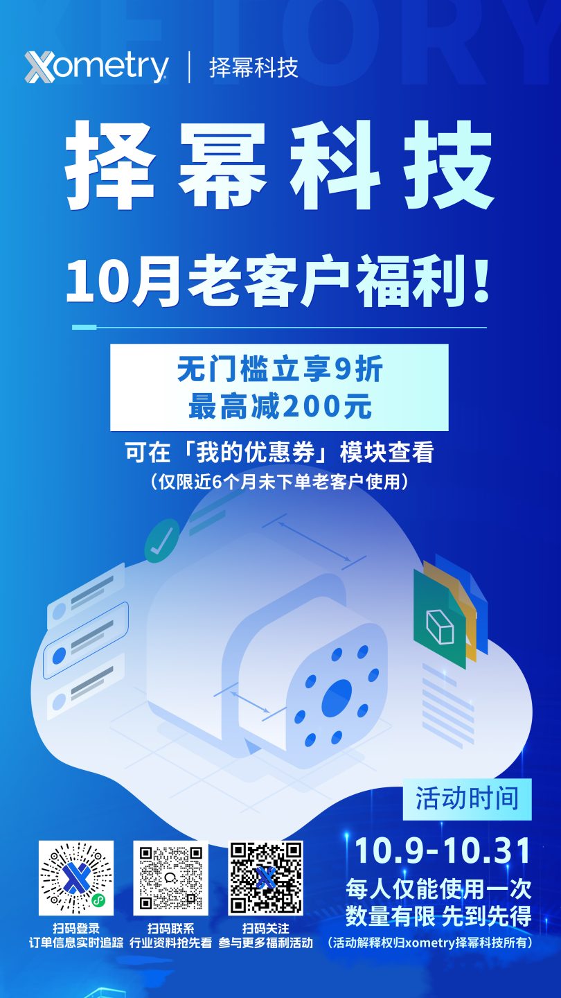 Xometry Asia · Oct 9, 2025 活动内容:符合条件的客户登录账号后,可在【我的优惠券】模块查看优惠券! 活动工艺:不限 活动力度:无门槛立享9折,最高减200元! 活动时间:10.9-10.31 立即上传设计图纸,获取实时报价,收获心仪定制部件! (活动解释权归Xometry择幂科技所有)